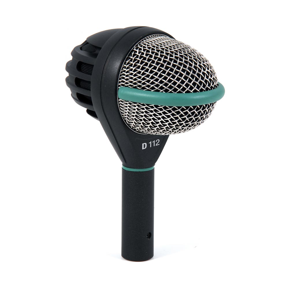 On stage or in the studio the AKG D112 Kick Drum Mic is the microphone to use to clean up the dirty low down. Stays free of distortion even at high sound pressure levels. Solid and powerful response below 100Hz. Very low diaphragm resonance, relatively narrow-band rising high-frequency response at 4kHz, and extremely robust construction are other outstanding features. Also works great for bass cabs, trombone, and other low-frequency instruments.