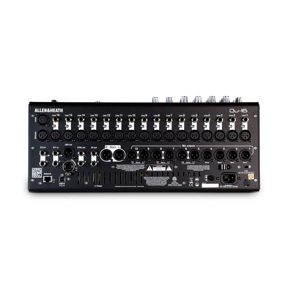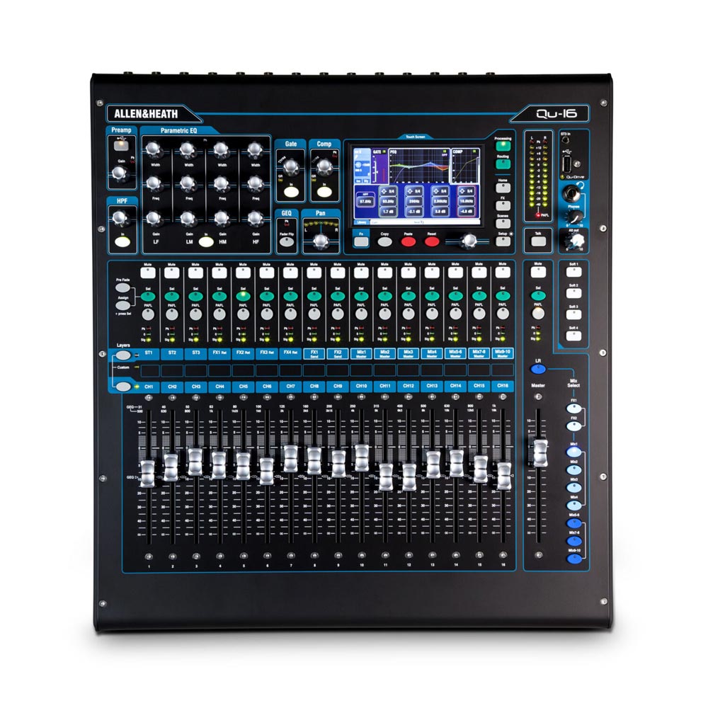 Bristling with all the features you’d expect from a top of the range digital console and incorporating technologies pioneered on the GLD and iLive digital mixing systems, Allen & Heath Qu-16 has the power and pedigree to deliver class-leading audio performance. Qu series features include multitrack recording direct to USB, Automatic Mic Mixing, ProFactory mic presets, plus an ever growing ecosystem of apps, accessories and remote I/O.