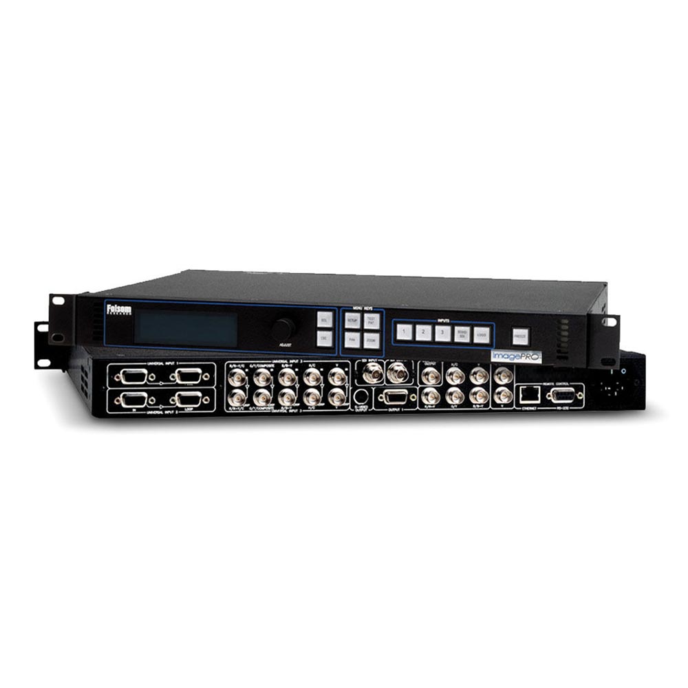 Thanks to Barco’s high performance image processing technology, the ImagePRO-3G is a high-performance video scaler, scan converter, switcher and transcoder all rolled into one. ImagePRO is the ideal solution for converting RGB, HDTV, component, s-video, composite (NTSC, PAL and SECAM) and HD/SDI video into a user-selectable video format. The ImagePRO includes four video outputs and three universal inputs, as well as a dedicated genlock BNC connector.