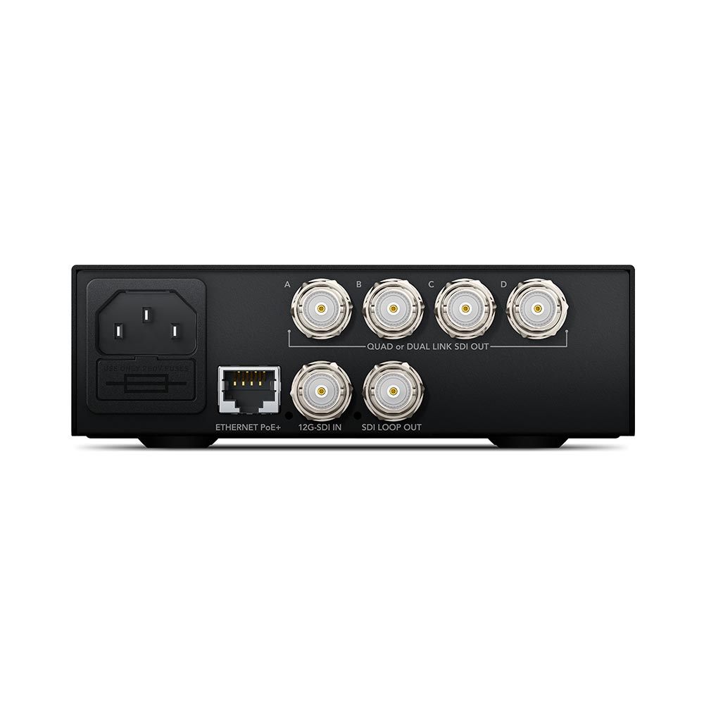 Convert 12G-SDI to Quad Link SDI so you can connect the latest 12G-SDI Ultra HD equipment with Quad Link Ultra HD equipment. Also allows Ultra HD SDI to be separated into four HD SDI outputs for using regular HD displays for creating video wall style displays. Includes 12G-SDI loop through and support for both Level A and Level B 3G-SDI equipment.