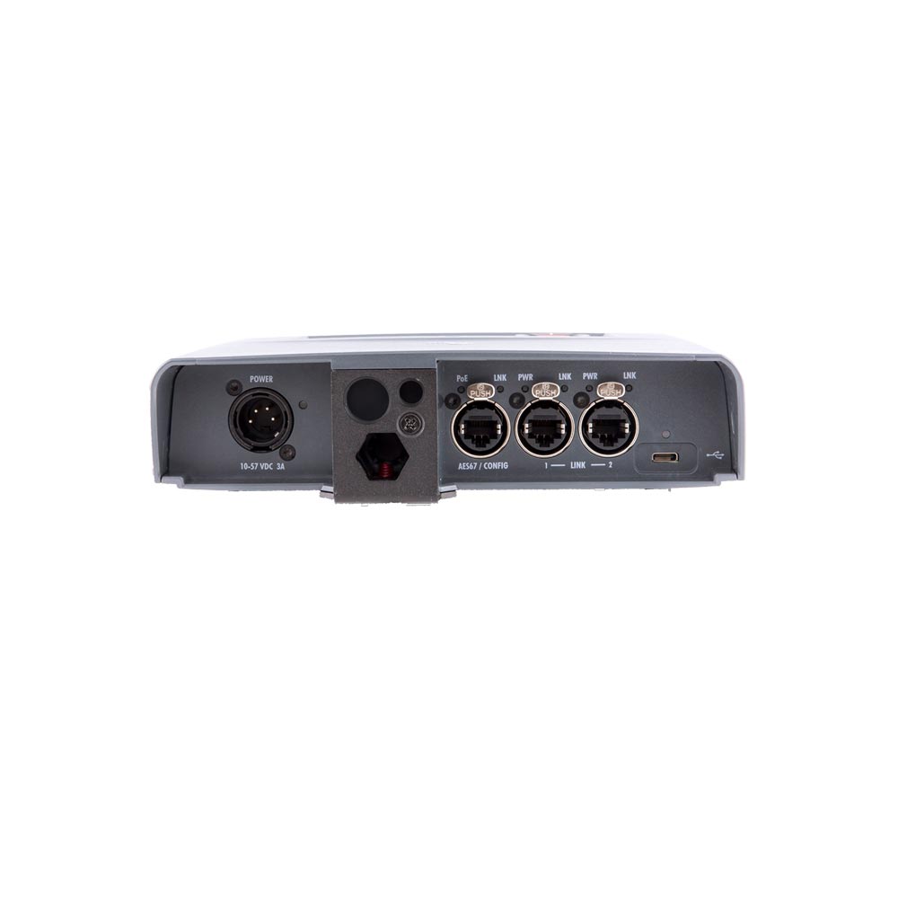 Bolero active Antennas runs over a standards-based AES67 IP network. Up to 100 antennas and 100 Beltpacks are able to connect to a system. The intelligent and high efficient use of bandwidth results in 10 Beltpacks per Antenna. The decentralized Antennas allowing the use of existing standard structured cabling and providing a wide area between the Antennas connected to AES67 switches and the Artist frames equipped with AES67 client cards. This is providing a fully integrated point-to-point roaming intercom ecosystem. The more decentralized Antennas added, the more robust the network becomes. The Antenna can be powered via Power-over-Ethernet (PoE+), simplifying installations by eliminating local power supplies or alternatively via a separate DC supply.