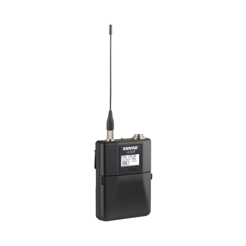 The ULXD1 is a wireless bodypack transmitter compatible with ULX-D® Digital Wireless Systems.