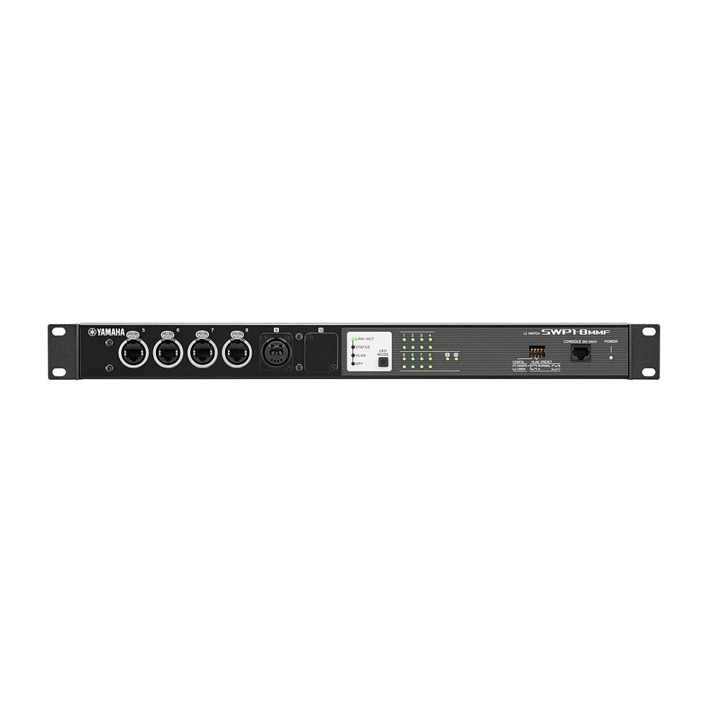 The SWP1 series L2 switch is ideal for Dante network systems. It features eight etherCON ports and option slots for two more ports as needed.